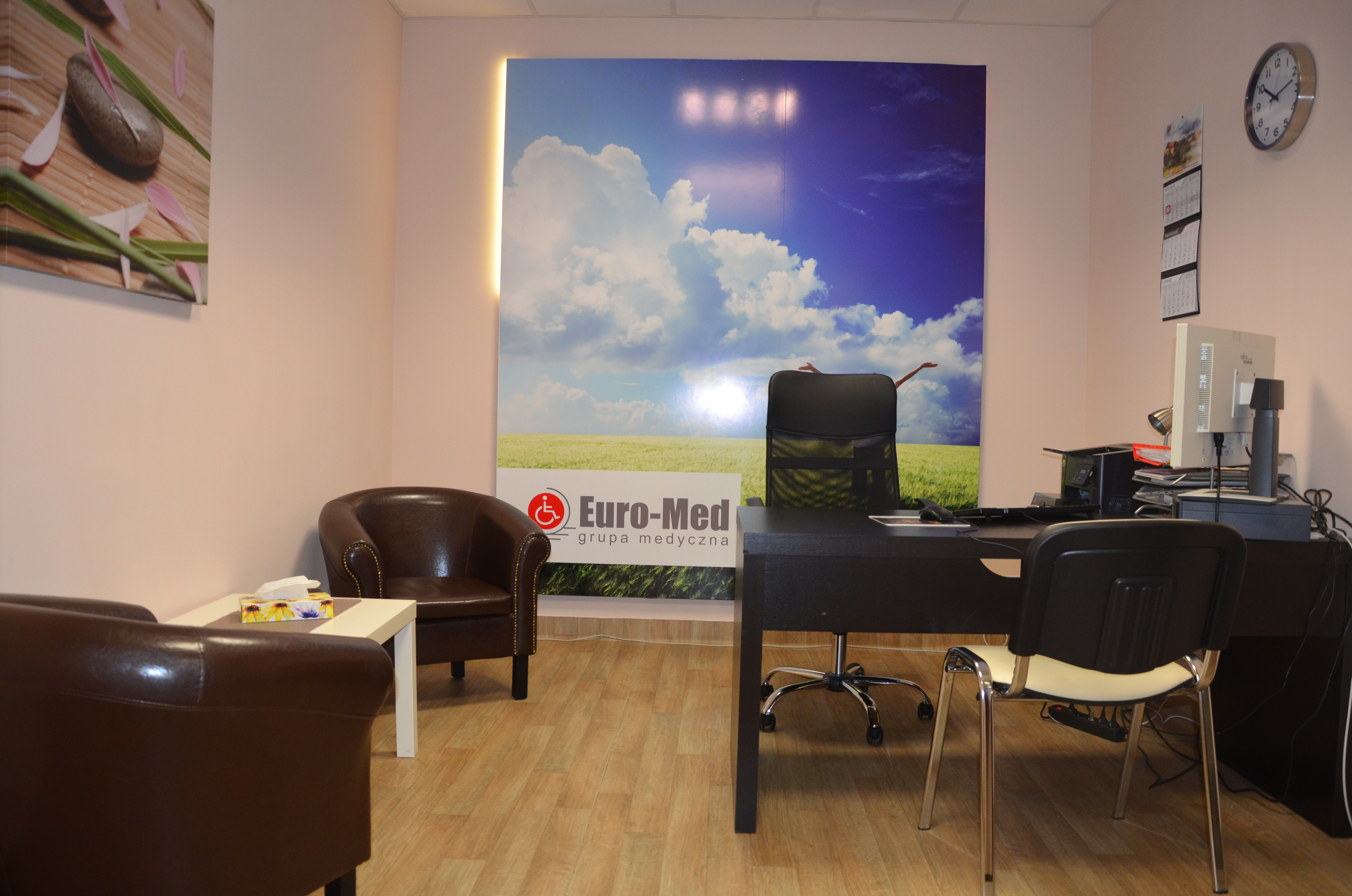 Do Państwa dyspozycji: wygodna, przestronna poczekalnia z punktem rejestracyjnym, pomieszczenie socjalne, toaleta dla personelu i pacjentów przystosowana dla osób niepełnosprawnych.