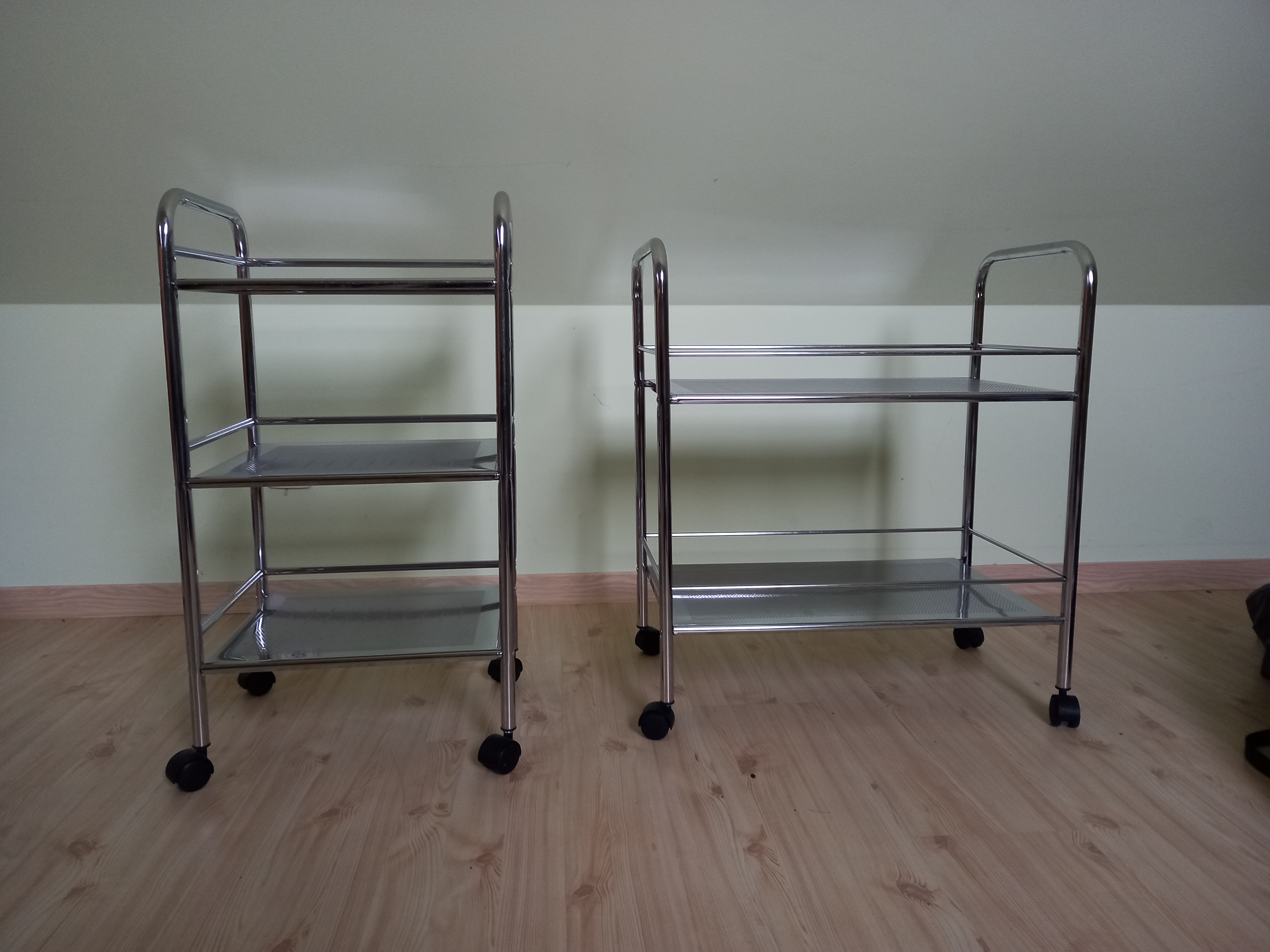 Sprzedam stoliki pomocnicze ze stali nierdzewnej, na kółkach. 2 szt. Jak nowe.